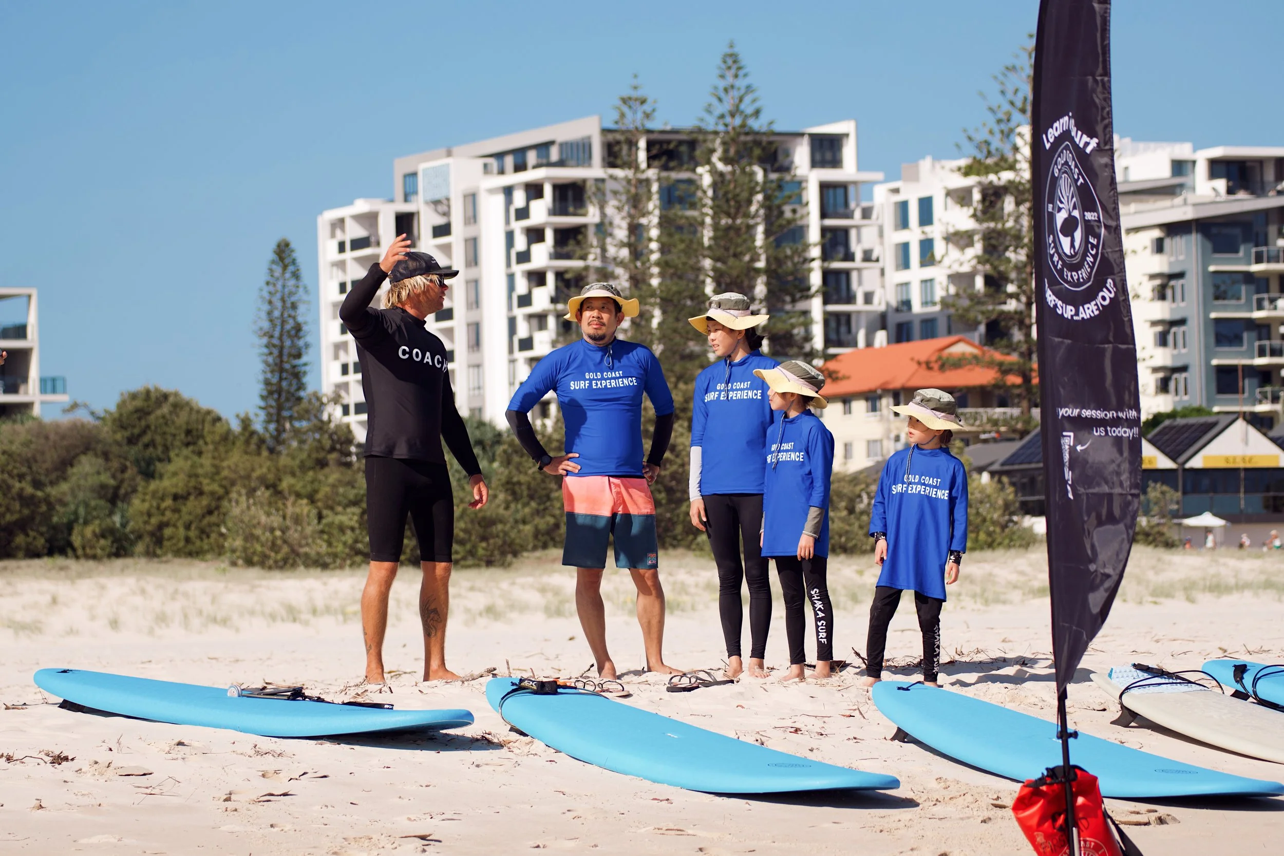 We will meet at the beach on the corner of Tallebudgera Drive and Gold Coast Hwy, look for the Gold Coast Surf Experience van and flags.